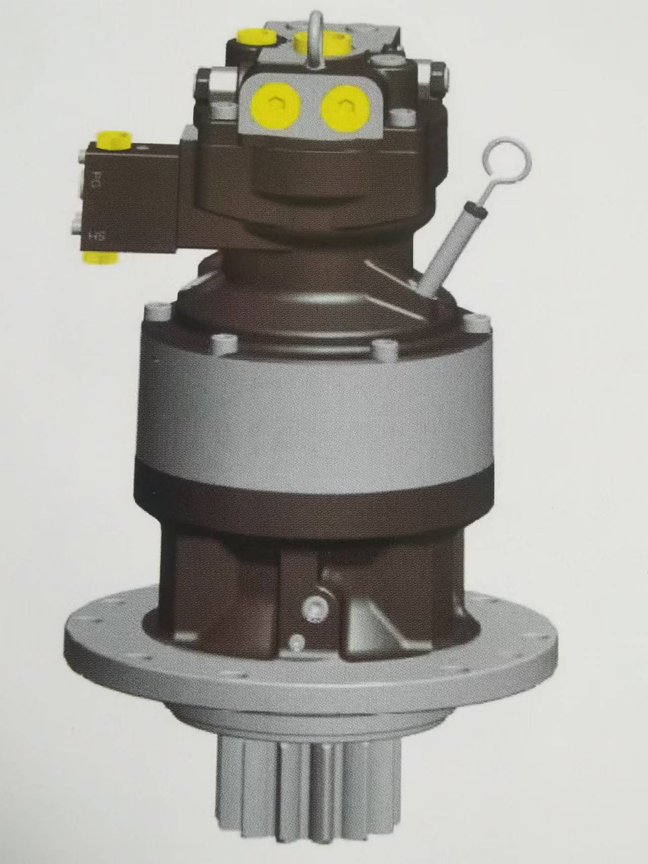 斜盘式柱塞马达及二级行星减速器总成,马达集成了安全溢流阀,补油阀,防逆转阀以及内置机械式停车制动器,安全可靠,性能良好。