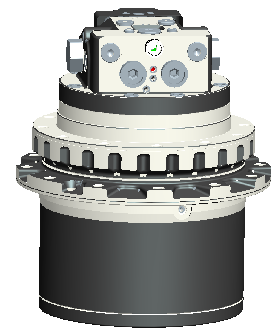 马达集成了安全溢流阀、内置平衡阀、机械式停车制动器、满足高转速和大扭矩的需求,结构紧凑、安全可靠。减速机采用行星减速结构、传动效率高,运转平稳、噪音低、适用性强。