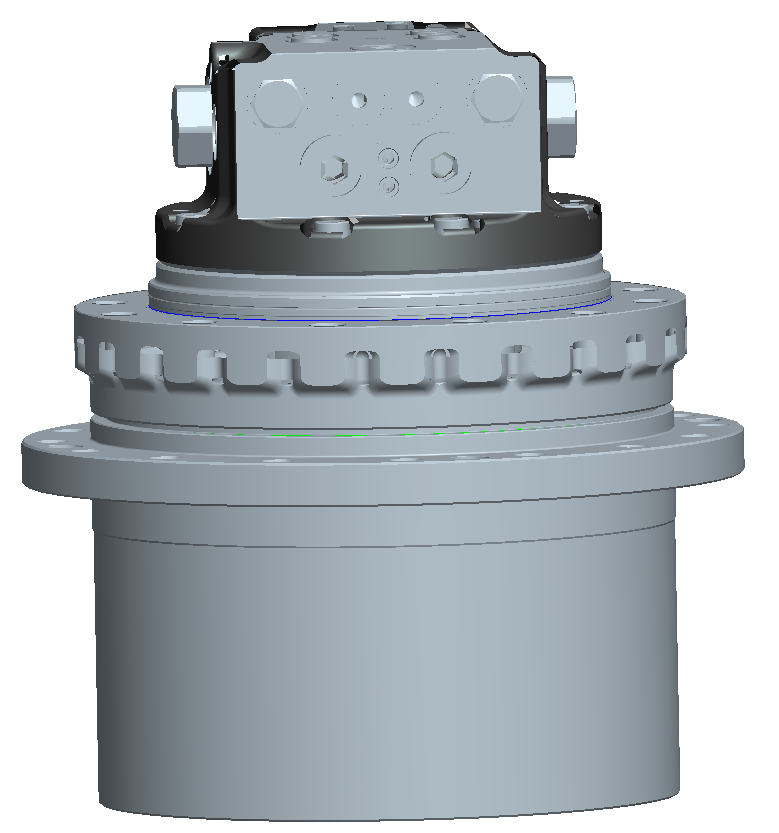 马达集成了安全溢流阀、内置平衡阀、机械式停车制动器、满足高转速和大扭矩的需求,结构紧凑、安全可靠。减速机采用行星减速结构、传动效率高,运转平稳、噪音低、适用性强。